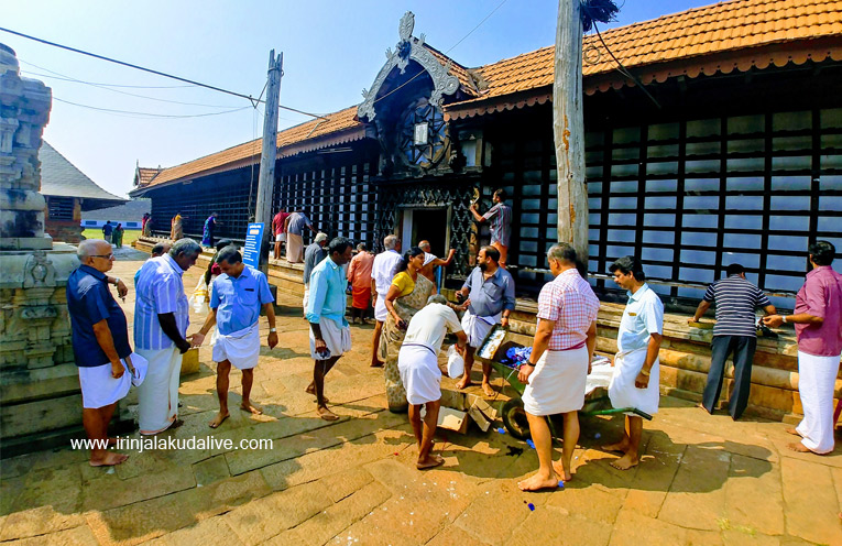 ഇരിങ്ങാലക്കുട : കൂടൽമാണിക്യം ക്ഷേത്രത്തിലെ തിരുവുത്സവത്തിന്റെ ഭാഗമായുള്ള സംഭാവനകളും വഴിപാടുകളും ദേവസ്വം ഓഫീസിൽ സ്വീകരിച്ചു തുടങ്ങി. ആദ്യ സംഭാവന മുൻ ഐ.എസ്.ആർ.ഒ. ചെയർമാൻ പദ്മ ഭൂഷൺ ഡോ .കെ രാധാകൃഷ്ണനിൽ നിന്ന് ഒരു ലക്ഷത്തി ഇരുപത്തയ്യായിരം രൂപ സ്വീകരിച്ചു കൊണ്ട് ആരംഭിച്ചതായി കൂടൽമാണിക്യം ദേവസ്വം ചെയർമാൻ യു.പ്രദീപ് മേനോനും അഡ്മിനിസ്ട്രേറ്റർ എ.എം സുമയും അറിയിച്ചു.
