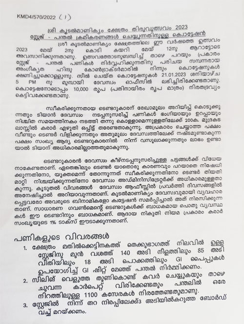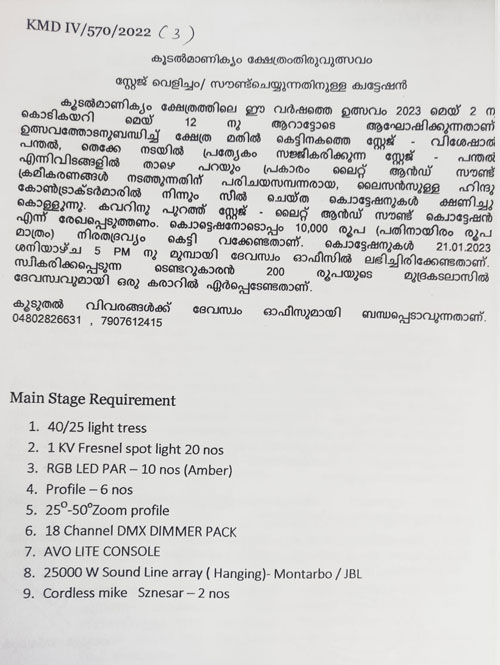 തിരുവുത്സവം 2023 : സ്റ്റേജ്, പന്തൽ ക്രമീകരണങ്ങൾ ചെയ്യുന്നതിനുള്ള ക്വട്ടേഷൻ