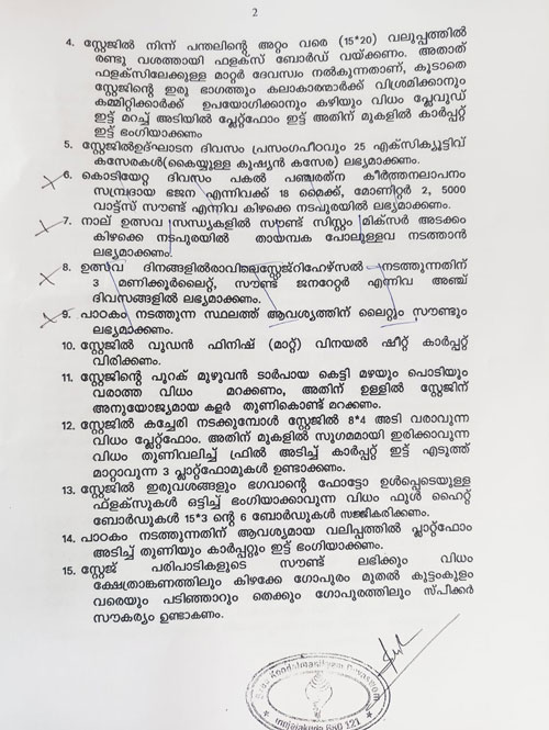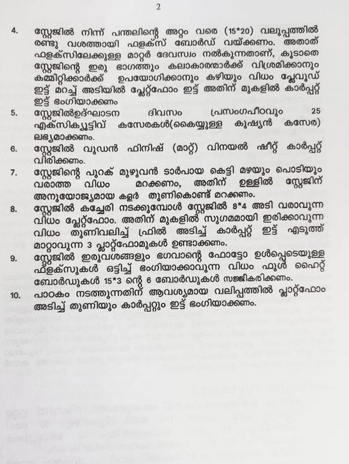 സ്റ്റേജ്, പന്തൽ ക്രമീകരണങ്ങൾ ചെയ്യുന്നതിനുള്ള ക്വേട്ടേഷൻ