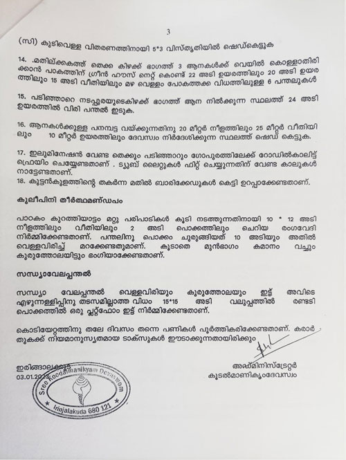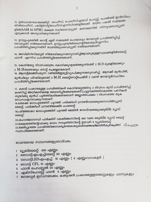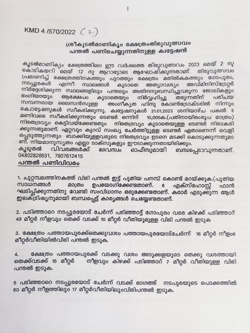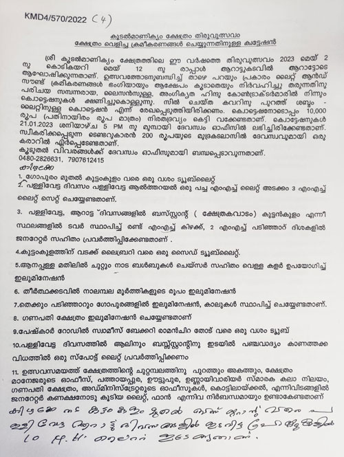ക്ഷേത്രം വെളിച്ച ക്രമീകരണങ്ങൾ ചെയ്യുന്നതിനുള്ള ക്വേട്ടേഷൻ